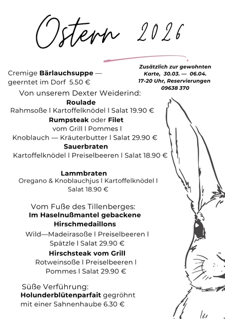 Zusätzliche Spezialitätenkarte zu Ostern 2026 und Öffnungszeiten